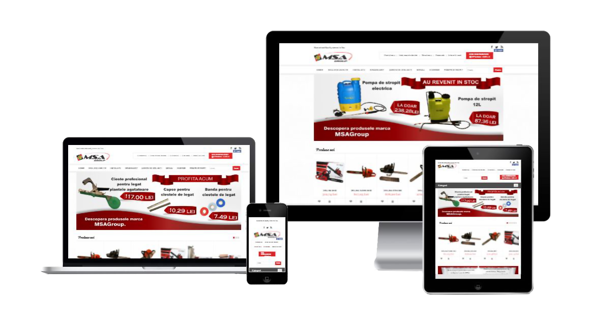 Oferim servicii de realizare magazin online responive, multiple facilitati incluse + promovare . Platforma ecommerce pentru crearea de magazin online cuprinde sute de functionalitati usor de administrat, optimizata SEO si pregatita pentru vanzari online. Din primele minute de la lansare. Nu trebuie sa mai ai de-a face cu bataile de cap generate de un magazin fizic. Acum totul este mai usor. Si simplu.